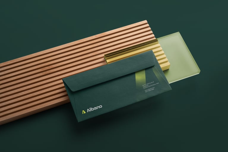 Albano é um nome de origem latina, derivado do nome do povo Albani, que habitava as regiões dos Alpes nos primórdios da história romana. Seu significado remonta a "o branco" ou "o luminoso". O símbolo desenvolvido busca transmitir a força e a história por trás do nome de maneira sólida, utilizando a letra inicial associada a um ícone de montanha, em referência aos Alpes. Seus cantos são angulosos e não há o uso de formas arredondadas, reforçando a ideia de técnica, robustez e firmeza